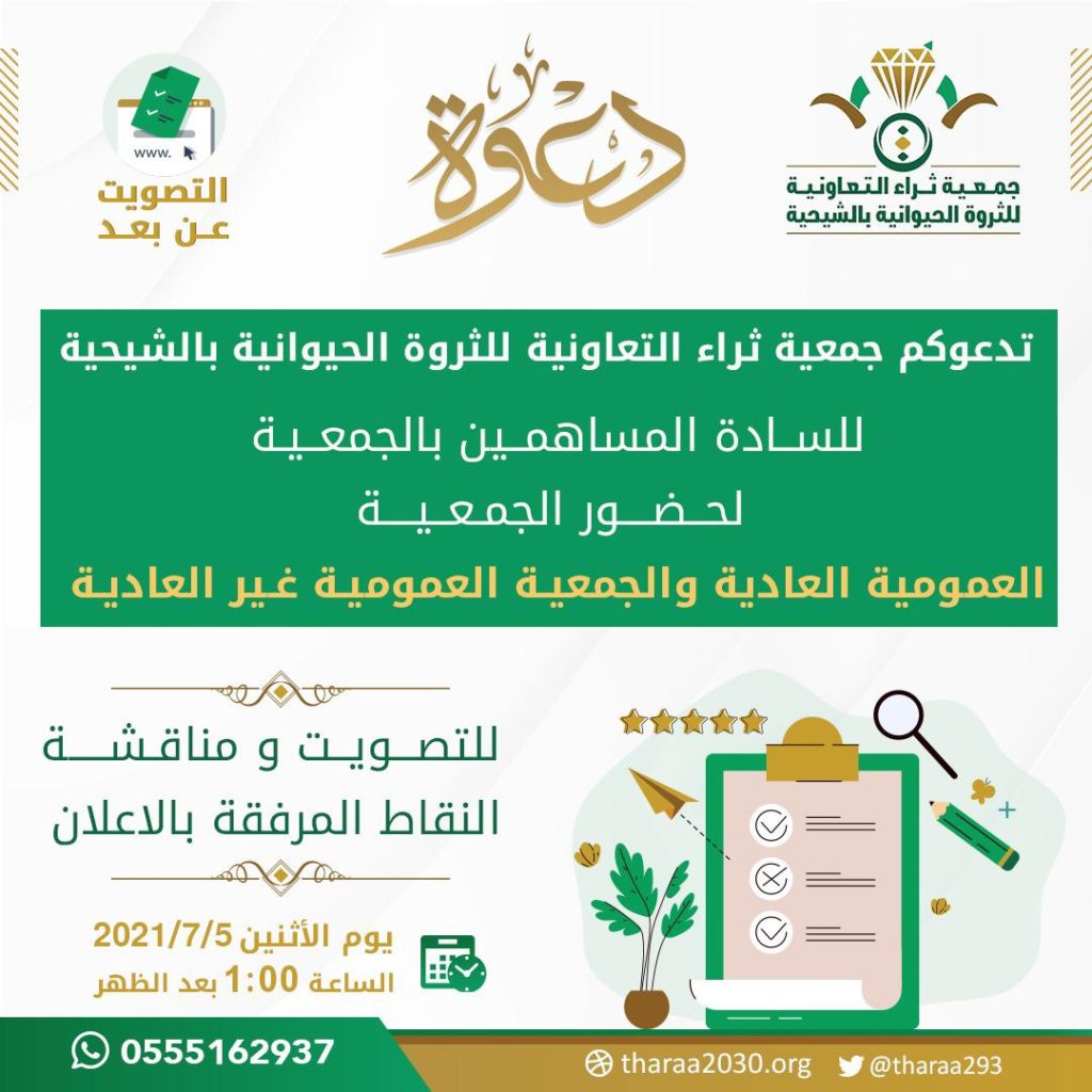 أخبار الجمعية جمعية ثراء التعاونية تدعوكم لعقد الحمعية العمومية العادية وغير العادية عن بعد جمعية ثراء التعاونية تدعوكم لعقد الحمعية العمومية العادية وغير العادية عن بعد. للتواصل 0555162937